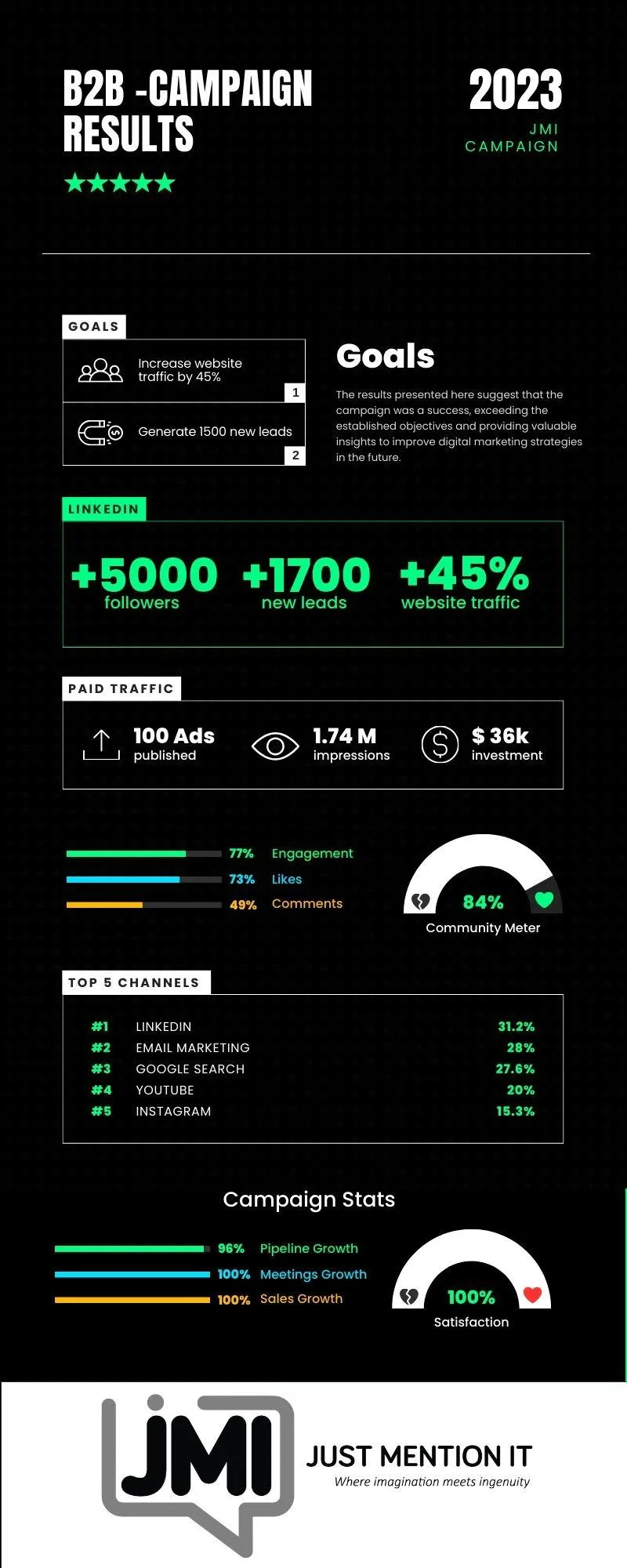 This case study exemplifies how JMI’s strategic integration of email marketing, ads, SEO, video marketing, and content marketing can revolutionize B2B growth. Our client not only broke through the market barrier but also set a new standard for engagement and conversion in their industry. With JMI, your B2B business can transform its growth trajectory, turning strategic marketing into your most powerful growth engine.